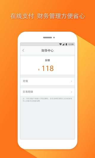 配送費(fèi)統(tǒng)一線上支付,方便安全,商家可在賬戶中心進(jìn)行充值。
