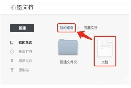 石墨桌面左上角有一個(gè)“新建”按鈕,點(diǎn)擊后會(huì)出現(xiàn)一個(gè)下拉菜單,里面有「 文檔 」、「 表格 」和「 文件夾 」三個(gè)選項(xiàng),點(diǎn)擊相應(yīng)的按鈕即可完成創(chuàng)建。