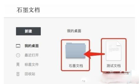 用鼠標(biāo)將“測(cè)試文檔”拖拽到“石墨文檔”文件夾上即可,如圖: