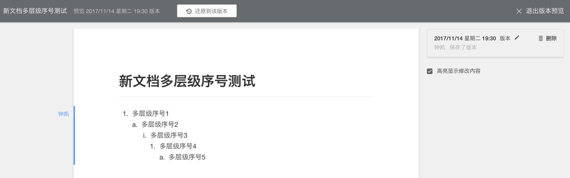 還可以在文檔歷史中,進(jìn)行預(yù)覽版本、還原、刪除,重命名歷史版本等操作,如下圖: