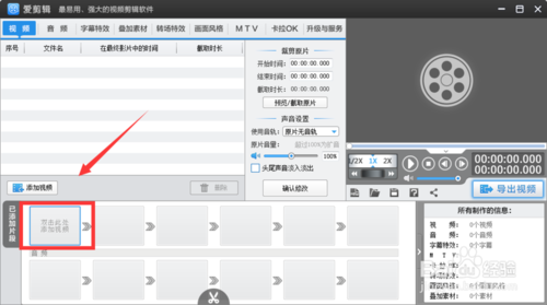 愛(ài)剪輯怎么添加圖片?1、打開(kāi)愛(ài)剪輯軟件,進(jìn)入視頻界面后,在音頻欄雙擊鼠標(biāo)左鍵添加視頻。