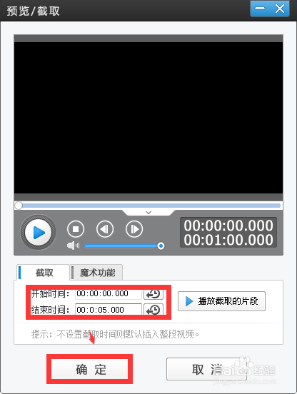 3、設(shè)置視頻長(zhǎng)度,默認(rèn)為1分鐘,沫沫在這里設(shè)置的是5秒,點(diǎn)擊【確定】。