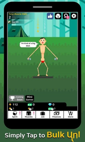 一款十分有趣的魔性惡搞養(yǎng)成游戲,一開始玩家是一位骨瘦如柴的小個(gè)子,通過玩家的手指點(diǎn)擊開始為你增加肌肉,逐步的成為一名超級(jí)肌肉男,成為所有人心中的男神。