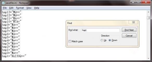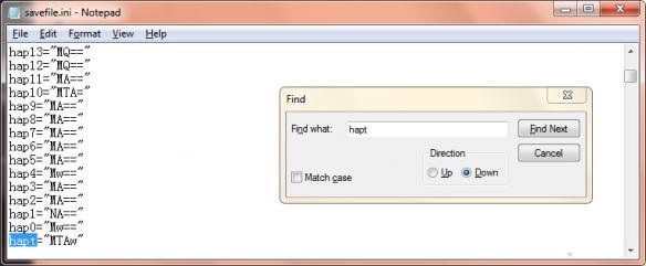 以記事本打開(kāi)存檔文件,ctrl+f,搜索標(biāo)簽hapt。