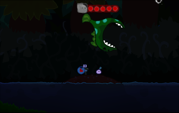 Allesweter家左上方進(jìn)入存檔小房間,打那個(gè)刺兒球撞墻壁會(huì)驚醒左邊水里的魚,然后上去才有boss戰(zhàn)。