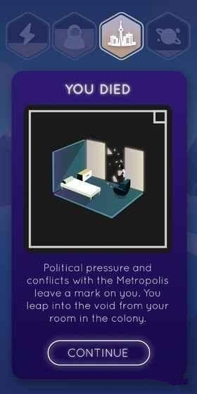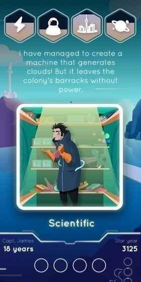 探索新的世界里沒(méi)有人曾同時(shí)面臨困難的情況下提出了由不同的角色去之前。你如何將自己的需求和要求作出回應(yīng)?快速向左或向右滑動(dòng),以使該會(huì)建立或摧毀你的殖民地的決定。但是,不要忘記每一個(gè)決定都有其后果。保持資源的平衡!