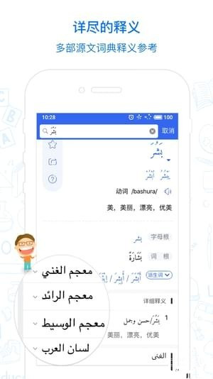 阿語詞典資料方面兼顧日常生活,科研,醫(yī)學(xué),歷史,文化,藝術(shù),天文,地理,等多個學(xué)科的專業(yè)詞匯同時吸收了阿拉伯方言詞匯及現(xiàn)代網(wǎng)絡(luò)流行詞匯。