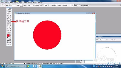 點(diǎn)擊“油漆桶工具”,然后單擊上一步畫(huà)的圓內(nèi)部,將圓填滿紅色。