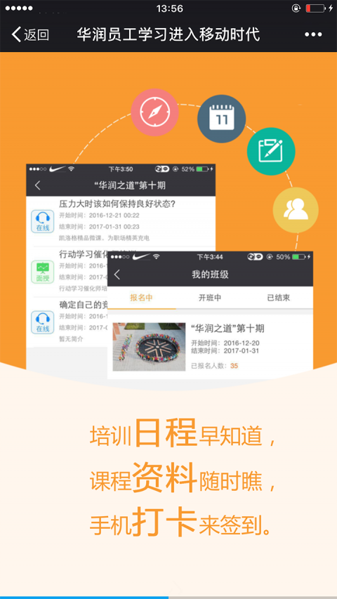 3、培訓(xùn)日程早知道,課程資料隨時瞧,手機(jī)打卡來簽到