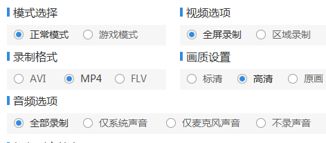 啟動軟件后,設(shè)置視頻、音頻、格式、畫質(zhì)等,就可以開始進行錄制了。