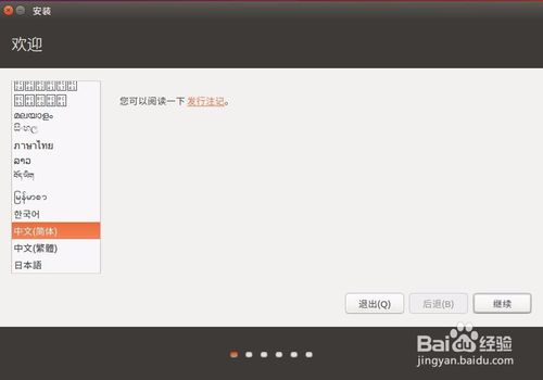 也可一直等待,等到它自己跳出安裝界面后自己從左邊的選項里選擇中文,選擇安裝(也可選擇使用ubuntu 進入使用界面),安裝教程跳到第 11步