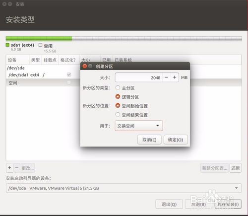 2048MB 邏輯分區(qū) 空間起始位置 交換空間
