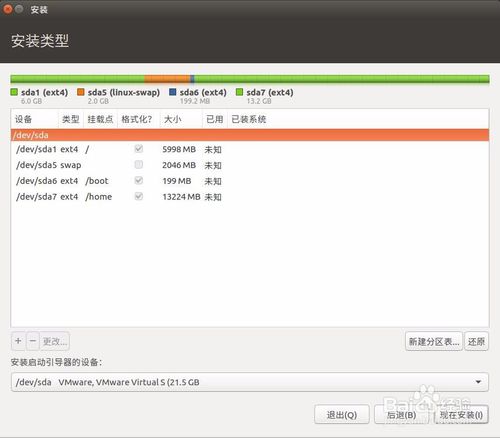 我的只用了20G來安裝所以只分了主要的基礎(chǔ)分區(qū)