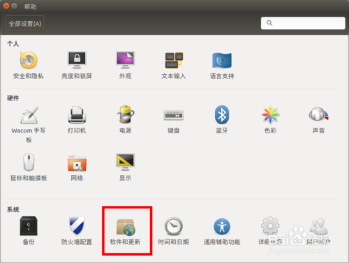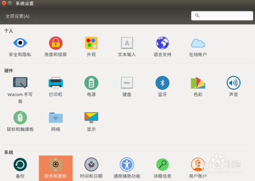 在彈出的窗口中選擇 “軟件和更新”。