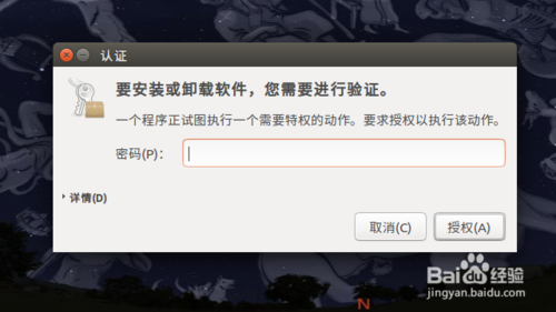 查看應(yīng)用的截圖、簡介、評價等信息,確認將要安裝之后,點擊“安裝”按鈕,系統(tǒng)將彈出系統(tǒng)密碼輸入窗口,在這里輸入密碼,單擊“授權(quán)”。