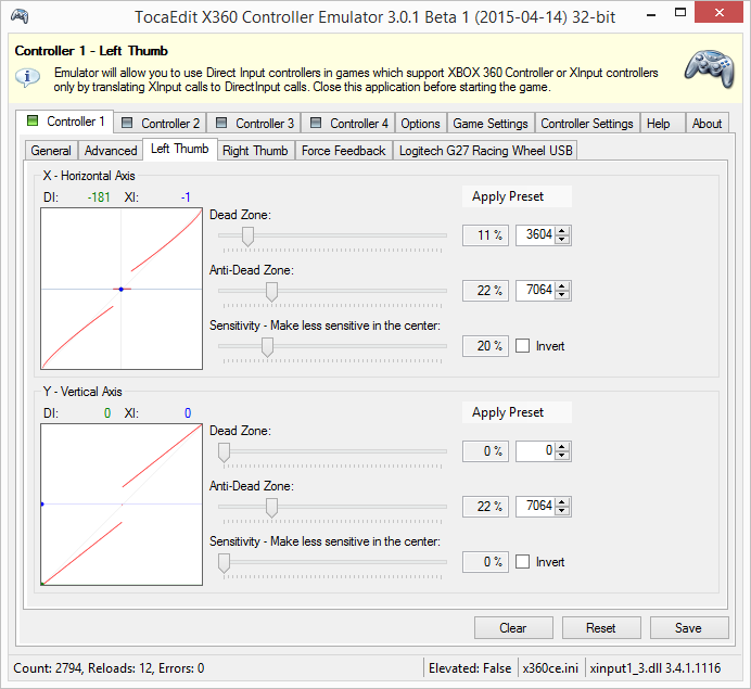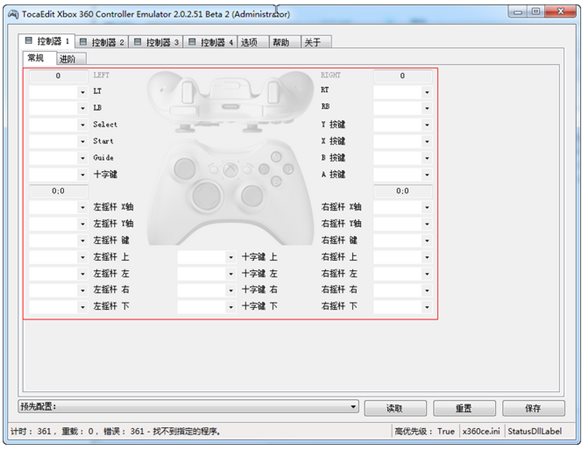 第二步,日常分別在x360ce中將兩個手柄設(shè)置好
