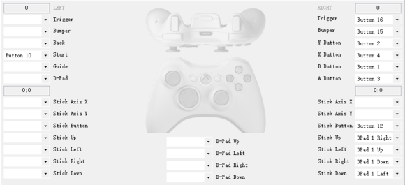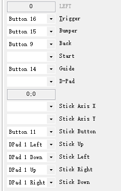 這里就是設(shè)定按鈕和推桿,這里就要靠自己摸索設(shè)定了,不同牌子的手柄控制器按鈕和推桿位置都不一樣,所以我就不說了。