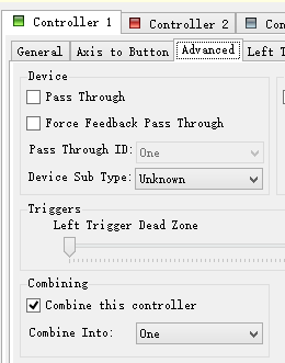 第四步,分別在兩個手柄的advance選項(xiàng)卡里勾選 combine this controllor 并選 combine為一個