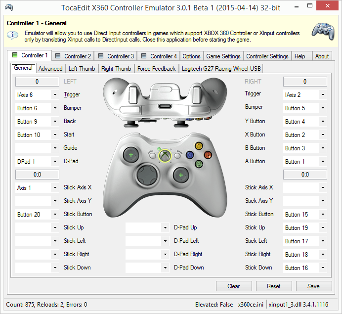 設(shè)定好了可測試看那x360ce手柄控制器的預(yù)覽圖和你的手柄控制器按鈕和推桿位是否一至。