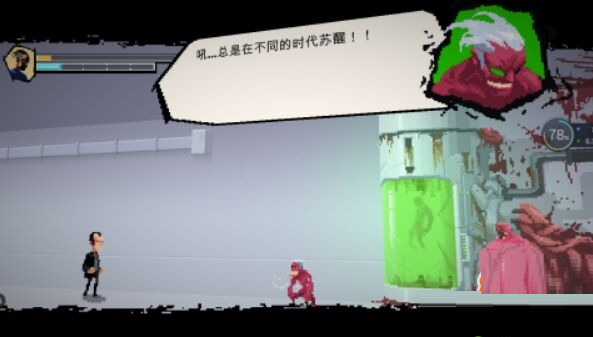 殺掉博士后我們來到了最終boss的地方,前面小怪特別多(多的爆炸!沒有手柄的同學可能要按得手疼),我建議大家選擇一些能夠范圍攻擊的英雄,我們一路披荊斬棘來到了幕后黑手的辦公室,這個穿白衣服 就是幕后的黑手,他的血特別厚,而且血量到底之后會爆氣,我們應該小心應對。