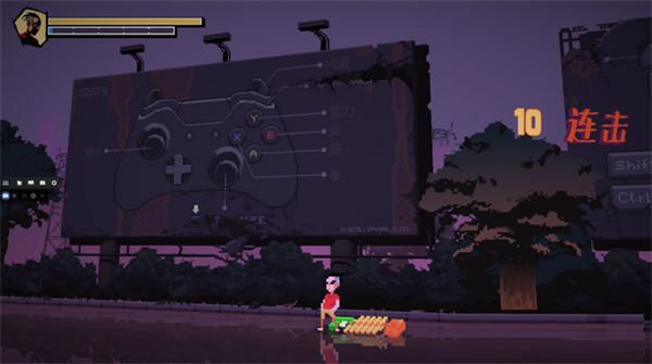 不多比比!首先我們進入游戲 進入游戲后順著向前走,會發(fā)現(xiàn)兩個大牌子上面告訴了我們操作的技巧,手柄的很詳細我就不多說了,咱們來看一看鍵盤操作: