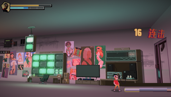 我們?yōu)槊總€關(guān)卡制作了原創(chuàng)熱血配樂,有電子樂,金屬樂,8-bit音樂等多種風格,并將音樂和動作的節(jié)奏緊密結(jié)合。