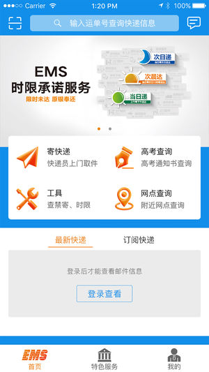 蘋果的手機(jī)可以在手機(jī)上的 App store 上直接搜索 “EMS” 找到EMS客戶端軟件下載安裝。(備注:可能會(huì)搜索到其他類似的軟件,請(qǐng)注意判別我們官方EMS手機(jī)客戶端的圖標(biāo)),國(guó)內(nèi)特快專遞(EMS)業(yè)務(wù)作為中國(guó)郵政速遞物流的精品業(yè)務(wù),以高速度、高質(zhì)量為用戶傳遞國(guó)內(nèi)緊急文件資料及物品,同時(shí)提供多種形式的郵件跟蹤查詢服務(wù)。目前,國(guó)內(nèi)已有近2000個(gè)市、縣開辦了此項(xiàng)業(yè)務(wù)。該業(yè)務(wù)可辦理異地特快專遞業(yè)務(wù)和同城特快專遞業(yè)務(wù)。經(jīng)濟(jì)快遞產(chǎn)品主要為電子商務(wù)B2B、B2C以及C2C規(guī)??蛻艏吧虡I(yè)客戶提供時(shí)限較穩(wěn)定的物品類寄遞服務(wù)。目標(biāo)市場(chǎng)及行業(yè)經(jīng)濟(jì)快遞主要是針對(duì)于快速增長(zhǎng)的電子商務(wù)市場(chǎng),具體包括:適合寄遞的服裝、鞋及箱包、飾品及手表眼鏡、化妝品、戶外運(yùn)動(dòng)、數(shù)碼產(chǎn)品、小型家用電器、居家生活用品、食品及保健品、母嬰用品、汽車裝飾、圖書音像樂器等行業(yè)。收寄客戶范圍經(jīng)濟(jì)快遞服務(wù)對(duì)象包括:在電子商務(wù)平臺(tái)銷售產(chǎn)品,并在電子商務(wù)平臺(tái)發(fā)起“使用經(jīng)濟(jì)快遞”電子訂單的零散客戶,在電子商務(wù)平臺(tái)銷售產(chǎn)品且具一定規(guī)模的協(xié)議客戶,以及批量商業(yè)客戶。