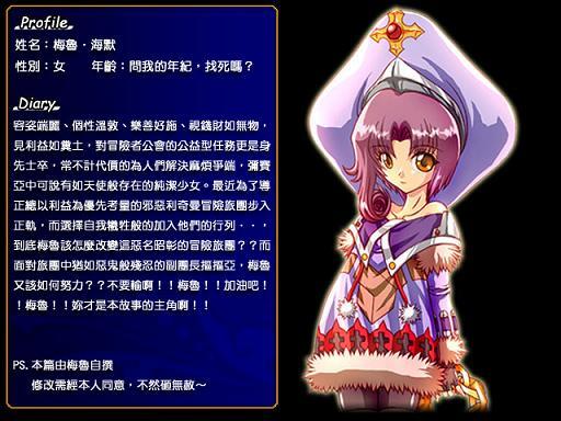 容姿端麗、個性溫和、樂善好施、視錢財(cái)如無物,見利益如糞土,對冒險(xiǎn)者公會的公益性任務(wù)更是身先士卒,常不計(jì)代價(jià)的為人們解決麻煩爭端,彌賽亞中可說有如天使般存在的純潔少女。為了導(dǎo)正總以利益為優(yōu)先考量的邪惡利奇曼冒險(xiǎn)旅團(tuán)步入正軌,而選擇自我犧牲地加入他們的行列……到底梅魯該怎么改變這惡名昭著的冒險(xiǎn)旅團(tuán)?而面對旅團(tuán)中猶如惡鬼般殘忍的副團(tuán)長——摳摳亞,梅魯又該如何努力?不要輸?。∶肤?!加油吧!梅魯!你才是本故事的主角啊?。≒S:本篇由梅魯自撰,修改需經(jīng)本人同意,不然砸無赦?。?br />