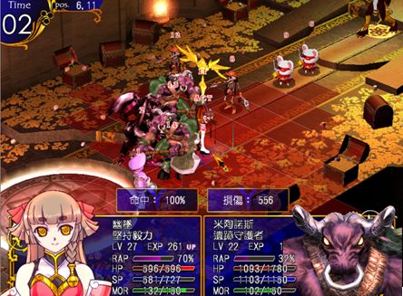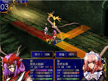 輪到莉可和可麗兒,就分別到兩邊打小怪,SL出兩邊至少各一只混亂,讓它們殘殺吧。希亞跳到暴牙正背后處,給他兩下……加上艾因之前的游擊,基本接近半血了……