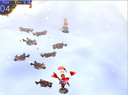 風(fēng)5除了在劇情方面是嶄新的開端外,在游戲的戰(zhàn)斗系統(tǒng)部份做了大改革。為了提升游戲的戰(zhàn)略性,讓玩家真實(shí)感受到戰(zhàn)略角色扮演應(yīng)有的游戲難度,原本行之有年的『回合制戰(zhàn)斗系統(tǒng)』即將被全新的『行動順序制戰(zhàn)斗系統(tǒng)』給取代。何謂『行動順序制戰(zhàn)斗系統(tǒng)』呢?簡單的說,戰(zhàn)場所有的敵我角色將依據(jù)特定的能力數(shù)值來進(jìn)行戰(zhàn)斗的先后順序,原先存在敵我方回合將被整合為一個行動回合,當(dāng)戰(zhàn)場的敵我角色平均都行動過一次,畫面右上角的TIME會加一個單位時間,表示行動回合向前推進(jìn)一回合,至于敵我方雙方的行動依據(jù)取決于人物能力的反應(yīng)值。在戰(zhàn)斗最開始的時候,戰(zhàn)場所有敵我角色的初始RAP量表皆為0,之后系統(tǒng)會依據(jù)反應(yīng)值于每單位時間內(nèi)進(jìn)行RAP量表的填充,只要誰的RAP量表最先達(dá)到100%,該角色就優(yōu)先行動,接下來直到行動的角色將RAP耗盡或者選擇待機(jī)指令,才會輪到下一個人行動,這就是『行動順序制戰(zhàn)斗系統(tǒng)』的行動模式。
