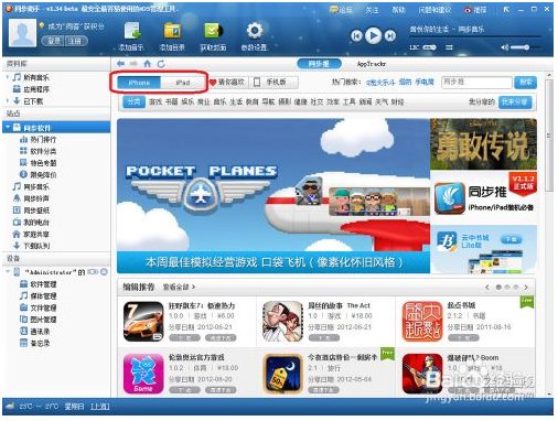 4、將設(shè)備連接電腦后,我們可以看到“同步軟件”,在這里面,大家可以看到可以下載的有很多,大家可以通過搜索來尋找自己所想要的軟件,所要注意的就是要選擇符合您設(shè)備軟件。