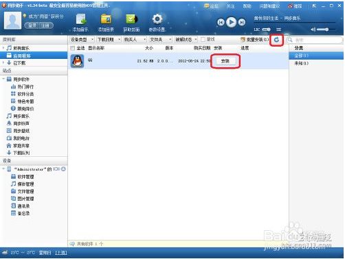 7、點擊“下載隊列”可以詳細的看到正在下載的程序。當下載完成后,可以在主頁的應用程序”中看到下載好的程序、我們可以點擊“安裝”來安裝下載好的程序到設(shè)備中。大家在使用的過程中有可能會發(fā)現(xiàn)會有兩個一樣的程序出現(xiàn),這時大家只要按一下“刷新”就可以了