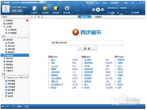 9、然后介紹音樂的下載,點擊“同步音樂”,在右邊的搜索框中輸入自己要找的音樂名稱并按“搜索”