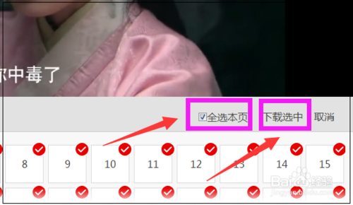 2、打開(kāi)該電視劇的視頻,點(diǎn)擊該電視劇要下載的集數(shù)或者點(diǎn)擊“全選本頁(yè)”,再點(diǎn)擊“下載選中”進(jìn)行下載即可。