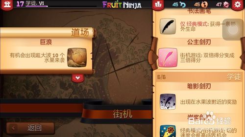 一、水果忍者快速升級(jí)的方法街機(jī)模式可以更快的積累經(jīng)驗(yàn):