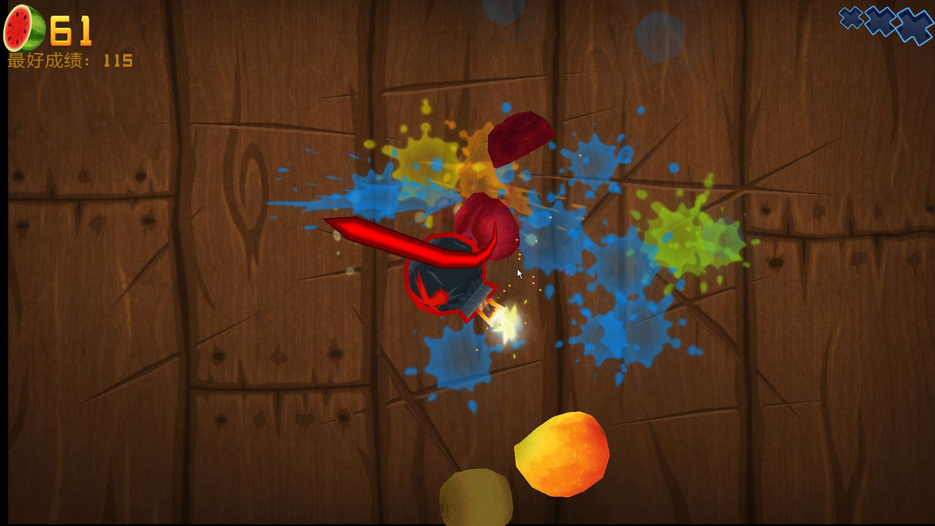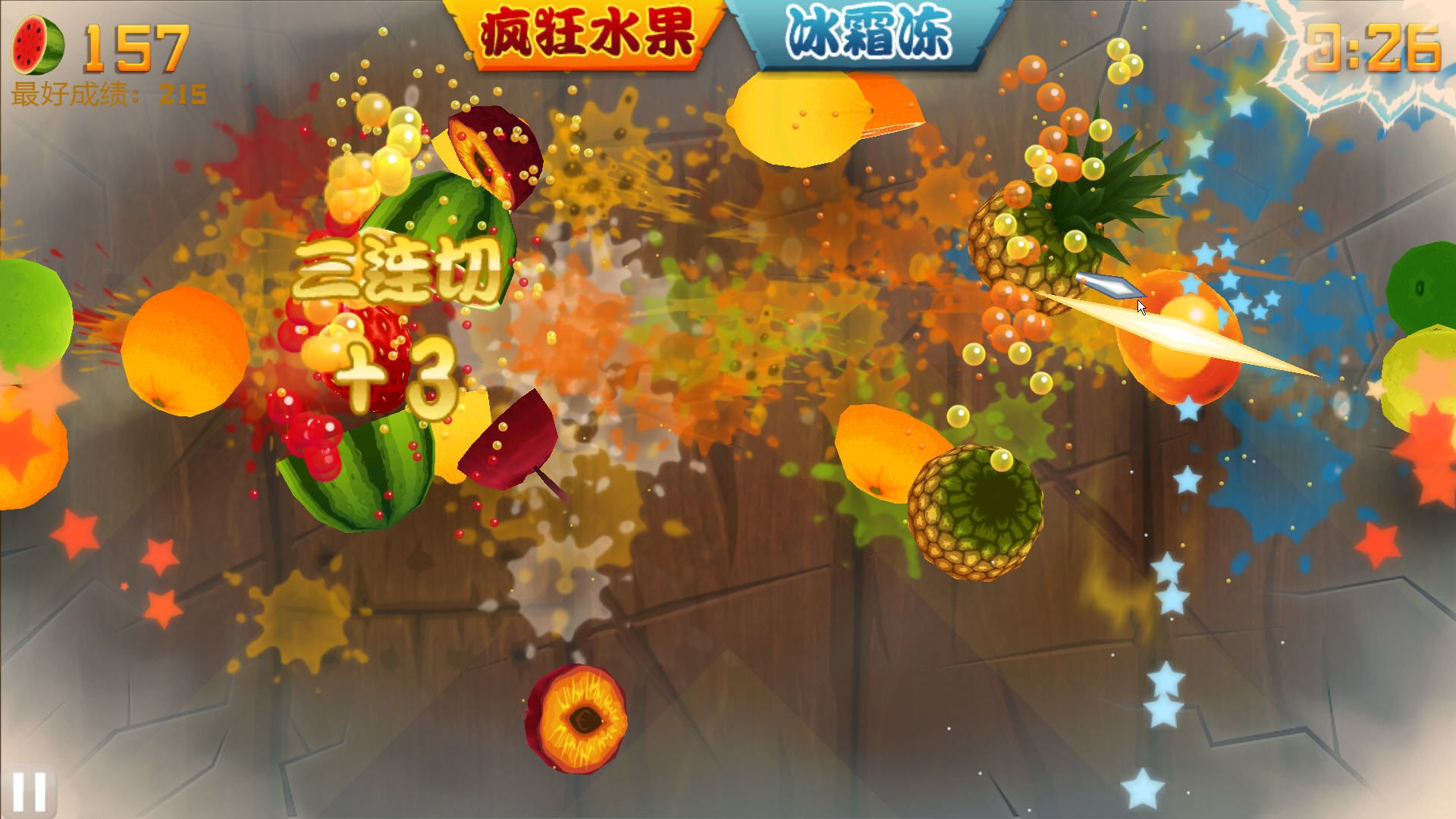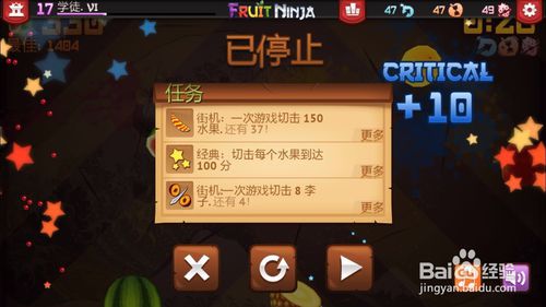 3、終極水果忍者:在經(jīng)典模式里得到200分