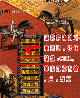 一、鼠標(biāo)移到玩家所要結(jié)拜的玩家身上,再按住鍵盤(pán):CTRL,再單擊鼠標(biāo)左鍵,待對(duì)方同意。