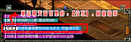 二、當(dāng)點(diǎn)完好友按鈕后對(duì)方會(huì)收到系統(tǒng)【交互】提示,鼠標(biāo)左鍵單擊:【交互】,即為同意。