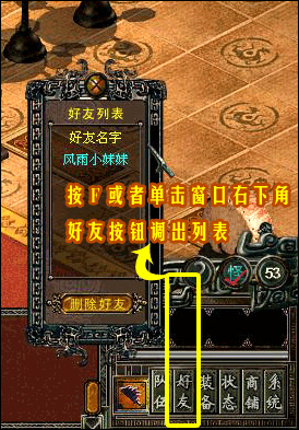四、按鍵盤(pán):F 鍵,或者鼠標(biāo)單擊窗口右下角的:好友 按鈕,調(diào)出好友列表。