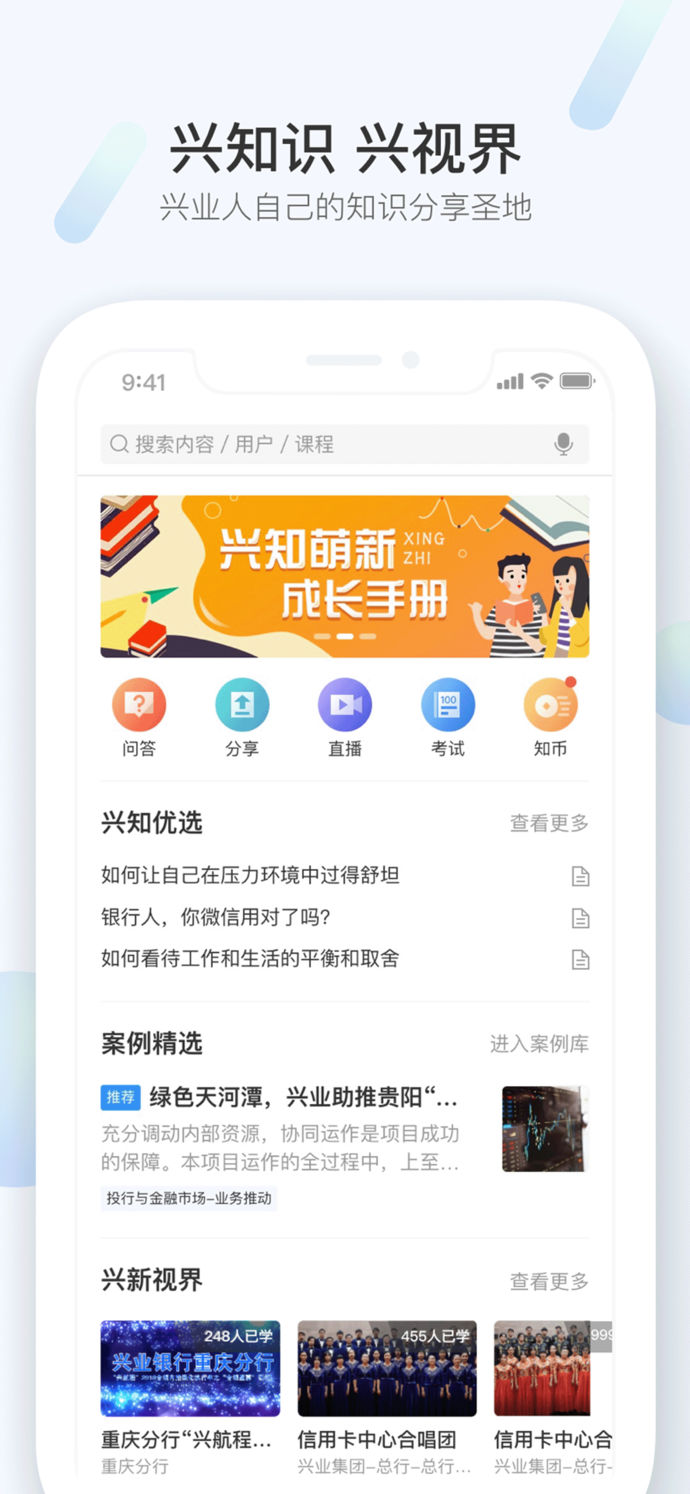 如果你是職場小白,可通過類似知乎的問答功能,提出在工作生活中遇到的各種問題,并邀請大咖幫助解答,大到行業(yè)動態(tài)、政策解讀,小到產(chǎn)品介紹、營銷套路,在興知app這里都能得到想要的答案;如果你是行業(yè)專家大咖,可以利用興知app分享功能,通過圖文或者語音的形式分享你對業(yè)務(wù)、行業(yè)的觀點和看法;