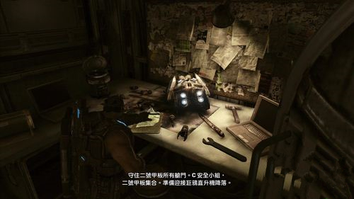 走出房門觸發(fā)一名美女與主角對話的事件,進入上頭寫有「SICKBAY」的房間(圖示二),調(diào)查左側(cè)盡頭處的文件(圖示三),取得多姆的心理報告.