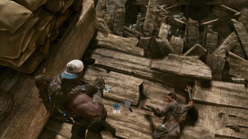 殺光第二波出現(xiàn)在收費亭上的獸人后,便會朝著巨大建筑物的方向前進,破壞掉右側(cè)銹蝕貨柜內(nèi)的木箱,即能在地上取得刺刀.