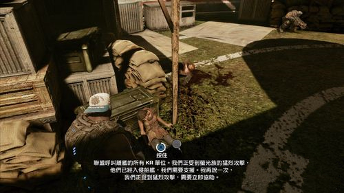 4.只有一小段路就可以和同伴回合,走出鐵門后科爾接到馬克斯的通信,讓他們協(xié)助消滅巨大的熒光獸.這就和之前的劇情結(jié)合在了一起.