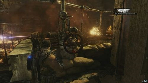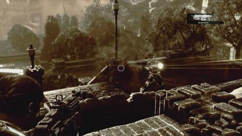 是《戰(zhàn)爭機器3》的三種基本武器之一,不過這里并沒有使用電鋸,而是搭載了一把刺刀。他的威力在近距離作戰(zhàn)時比較明顯。