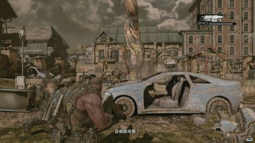 1.跟著安雅走,基本操作應(yīng)該大家都會的,沒有接觸過GOW3的也非常容易上手.在門前出現(xiàn)一段老爸的幻象后需要和戰(zhàn)友共同防守.