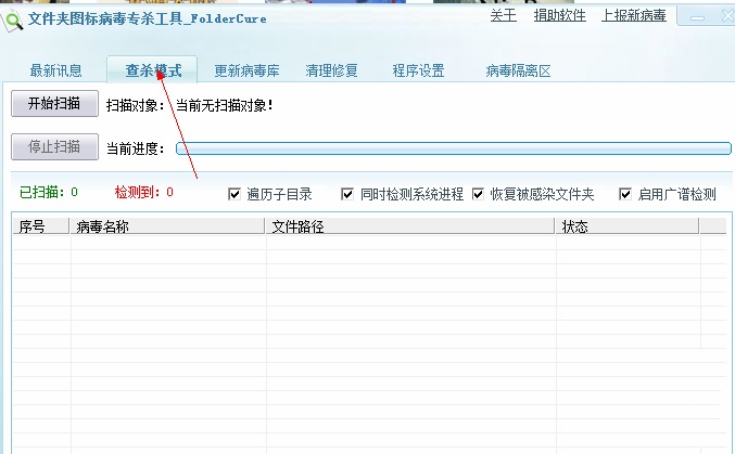 1、打開USBCLeaner軟件,點(diǎn)擊查殺模式