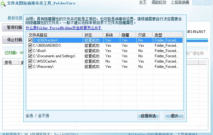 1、獨(dú)有的分類查殺引擎具有檢測(cè)查殺470余種U盤病毒2、U盤病毒廣譜掃描,U盤病毒免疫,修復(fù)顯示隱藏文件及系統(tǒng)文件,安全卸載移動(dòng)盤盤符等功能,全方位一體化修復(fù)殺除U盤病毒。