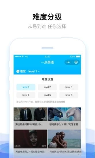 根據(jù)英語(yǔ)視頻內(nèi)容的難度區(qū)分進(jìn)行分級(jí),從易到難,讓你找到適合自己的英語(yǔ)視頻內(nèi)容,英語(yǔ)學(xué)習(xí)更輕松!