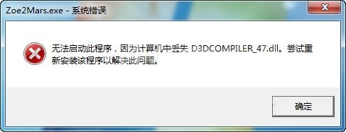 1、使用Win 7系統(tǒng)的玩家若運(yùn)行游戲時(shí)出現(xiàn)“無(wú)法啟動(dòng)此程序,因?yàn)橛?jì)算機(jī)中丟失D3DCOMPILER_47.dll”的錯(cuò)誤提示(如下圖所示),請(qǐng)安裝游戲根目錄中的“Windows6.1-KB4019990-x64.msu”補(bǔ)?。?br />