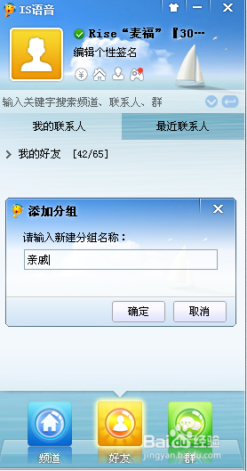 然后填入分組名稱,如‘親戚’左鍵確定